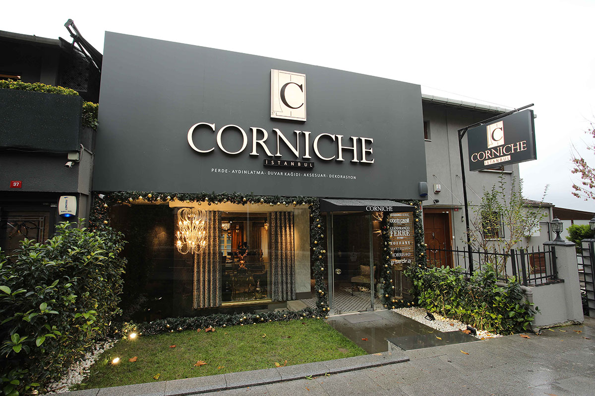 İthal, yerli mobilya, dekorasyon, mimari, uygulama ve perde konusunda uzun yıllara dayanan, konularında tecrübeli kurucularıyla Corniche İstanbul firması; tüm mekanlara, fonksiyonelliği kalite standartlarında, satış öncesi ve sonrası servis seviyesi yüksek mekan çözümleri sunmaktadır. Son kullanıcıların mekanlarında kullanabilecekleri perde, döşemelik kumaş, ithal ve yerli aksesuarlar, heykeltıraş ve ressamların eserleri, halı, duvar kağıdı, ithal ve özel tasarım aydınlatma, dekoratif boya gibi tüm dekorasyon tamamlayıcı ürünlerine ulaşabilecekleri bir merkezdir.