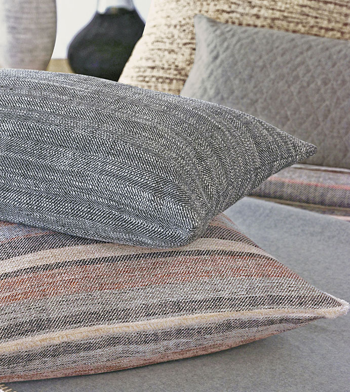 Escape to a luxury mountain retreat with Ridge, Thom’ s minimalist take on rustic interiors. Its streamlined striped duvet is balanced by nubby tweed shams and quilted decorative pillows adding cozy texture and extra warmth. Style Ridge on its own or with our soft flannel Brera Decorative Pillow and Sconset Coverlet for a clean, layered look of ultimate comfort.