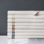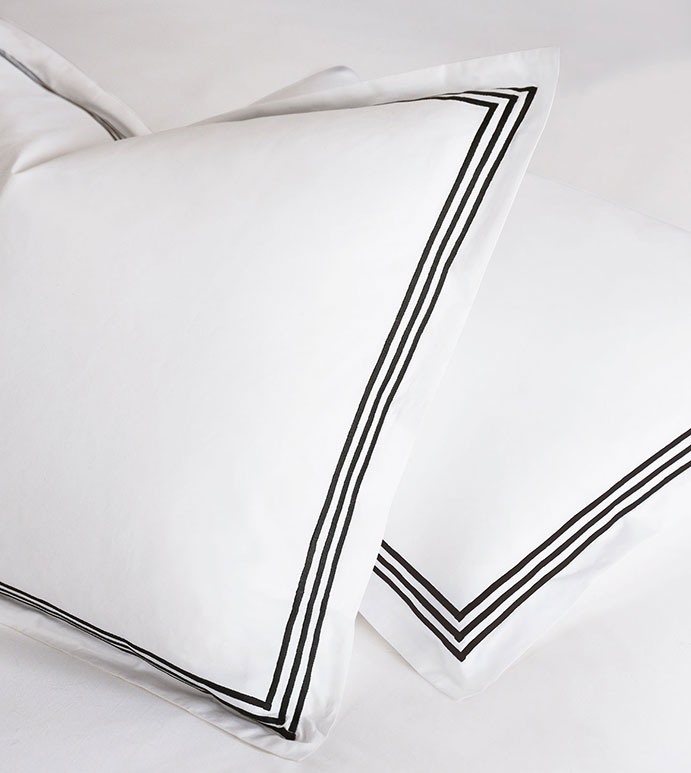 Crafted from the finest Egyptian cotton and embelished with three rows of delicate satin stitching, Tessa remains one of our most sought after de' Medici programs.This interpretation of grand hotel bedding is available in crisp white and elegant ivory, with stitching colors ranging from muted taupe to daring scarlet. Style Tessa with our upholstered Corrado Bed in a coordinating color.