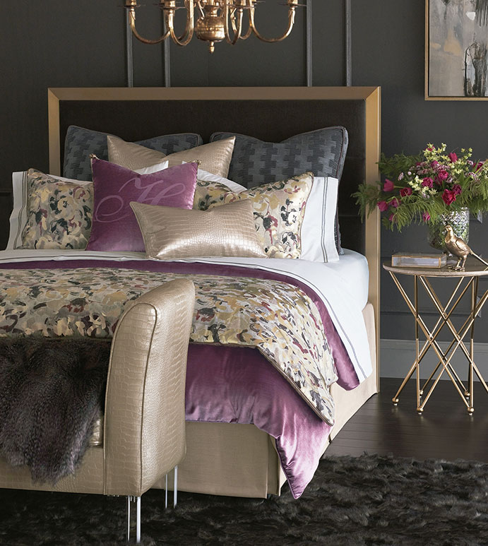 Valentina, Hollywood Regency ihtişamına sanatsal bir yaklaşım getiriyor. Dut kadifeleri ve ışıltılı metaliklerle dolu bu koleksiyonda bolca stil var. Arsız altın suni yılan derisi vurguları ve lazerle işlenmiş monogramları, bu klasik lüks estetiğe beklenmedik bir dokunuş katıyor. Bu koleksiyonun femme fatale kenarına ekstra bir çizgi eklemek için Valentina’nın dramatik döşemeli bankıyla aksesuar yapın.
